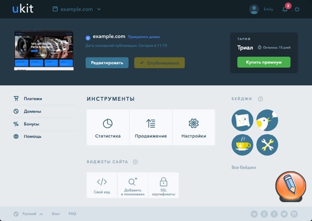 uKit – платный конструктор сайтов, созданный той же командой разработчиков, что и uCoz. Фактически это внук uCoz – более простой, интуитивно понятный и красочный. И при этом платный.