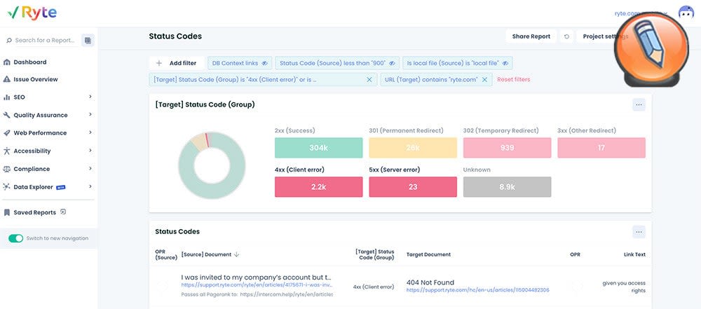 Найдите битые ссылки на сайте с помощью Ryte
